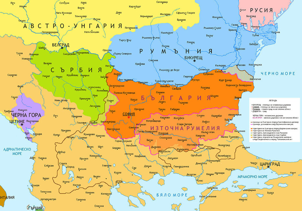 По-настоящему судьба болгар решилась несколько месяцев спустя - 13 июля в Берлине. Там Великие державы подписали договор, который разорвал земли, преимущественно населенные болгарами. В Северной Болгарии было создано вассальное Турции Княжество Болгария, на юг от гор Стара-Планина – автономная область Восточная Румелия, а обширные части населенных болгарами земель во Фракии и Македонии были оставлены в прямом подчинении султану.
