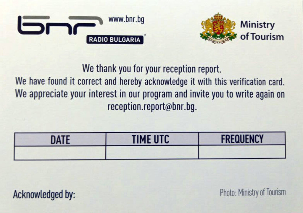 Серией из 12 карточек подтверждаются все сигналы Болгарского национального радио в эфире ("Горизонт", "Христо Ботев", региональные радиостанции и передачи "Радио Болгария").