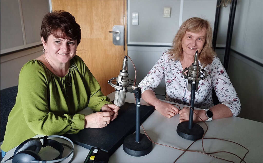 Проф. Славка Цанова (вдясно) и гл. ас. Владислава Иванова в студиото на Радио България