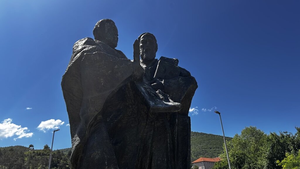 Памятник святым Кириллу и Мефодию во дворе гимназии в Цариброде