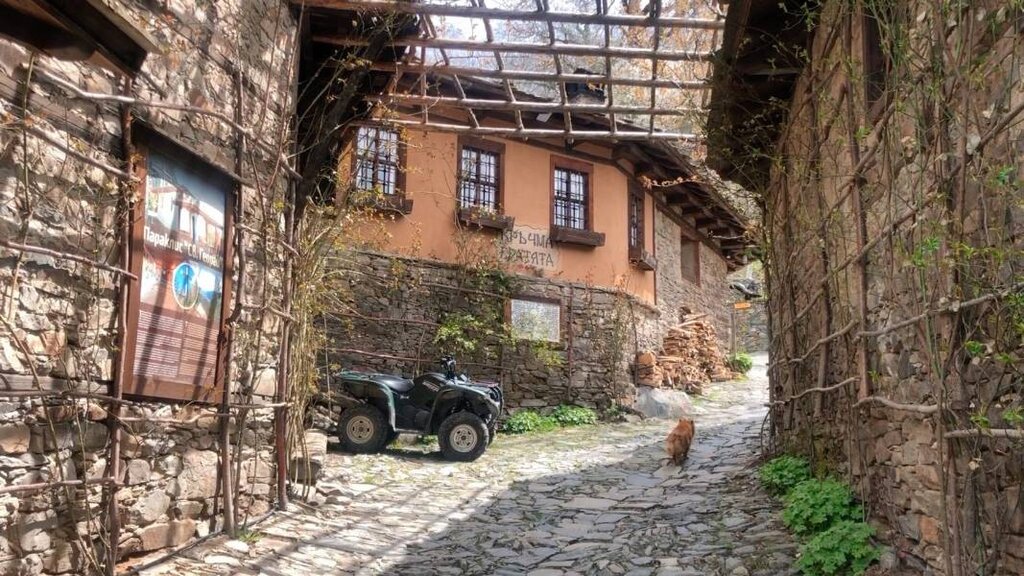 В селе не более 7 гостевых домов и 3 ресторанчиков. Остальное – архитектура, природа, тишина и хрустальной чистоты воздух. Останавливаемся перед старой школой, построенной в 1892 г. меценатом Йордже Димитровым. Здание отреставрировано и в нем открыт музей, а на первом этаже расположилась выставка современных болгарских художников. Молодой смотритель Тома Жуглев показал нам музей:
