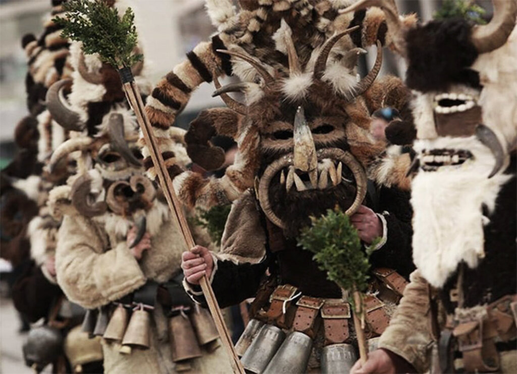 В Новогоднюю ночь выходят сурвакары - это ряженые с устрашающими масками и колокольчиками.