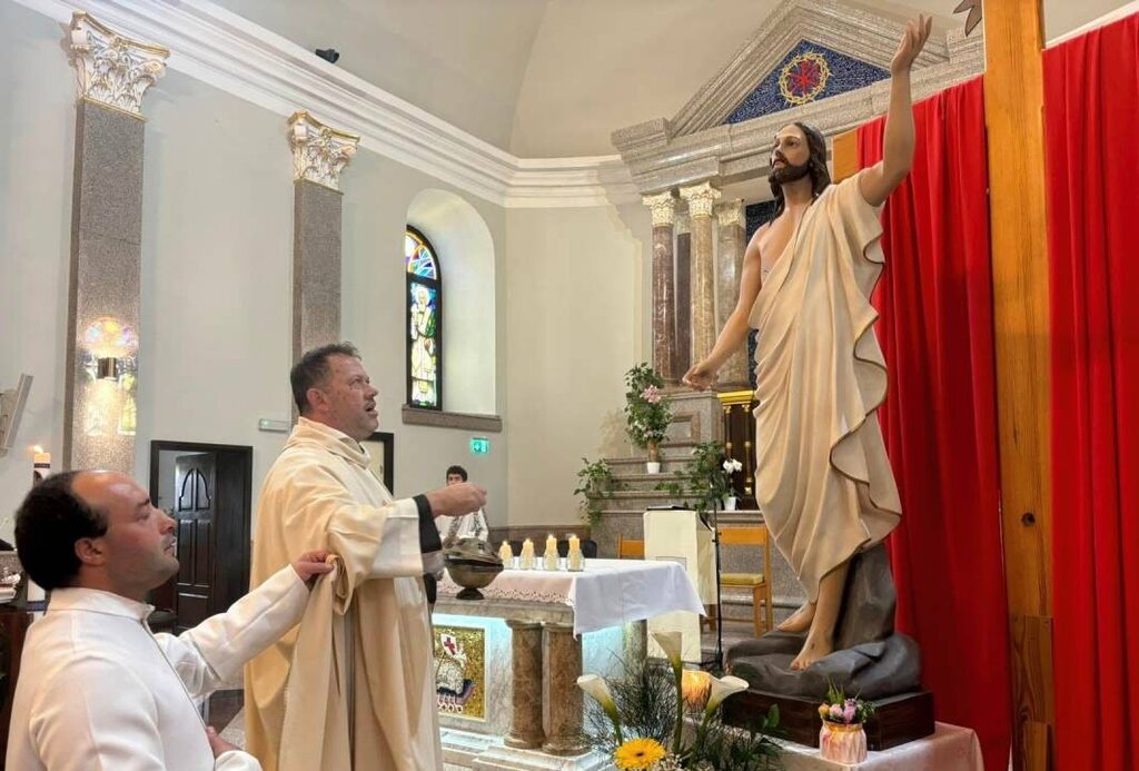 В ночь Великой субботы на воскресенье мы приглашены провести вместе пасхальное бдение, на котором будет благословлен новый огонь, зажечь пасхальную свечу, послушать Слово Божие и, после этого, оповестить хорошую новость – "Христос Воскрес!". И порадоваться вместе. На Пасху у нас будут две торжественные литургии. И я надеюсь, что в этом году здесь будет больше людей, благодаря той прекрасной благодати, что в этот раз все христиане – католики, православные, армяне, протестанты, празднуем вместе Пасху. Дай Бог, чтобы было больше таких случаев, что позволило бы нам дать верный знак своего единения во имя нашей веры в Воскресение Иисуса Христа".