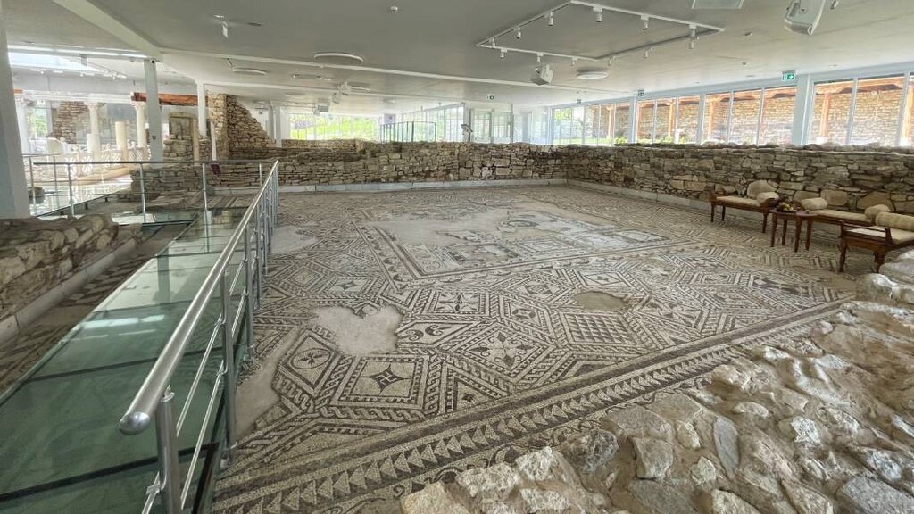 "Эта вилла была центром загородного поместья - местом, куда ее владелец приезжал, чтобы наблюдать за работой своих подчиненных, принимать гостей, выслушивать подданных и решать их проблемы. Все, что было найдено во время раскопок, свидетельствует о том, что первый этаж этого дома весь был облицован мрамором и это уникально. Такие мраморные декорации не встречаются ни в одной провинции Римской империи, простиравшейся на трех континентах. Здесь, вероятно, принимали императоров и высших магистратов. Наша мозаика и реставрация мрамора оригинальны, у нас нет ни одной копии", - рассказала экскурсовод Магда Райкова.
