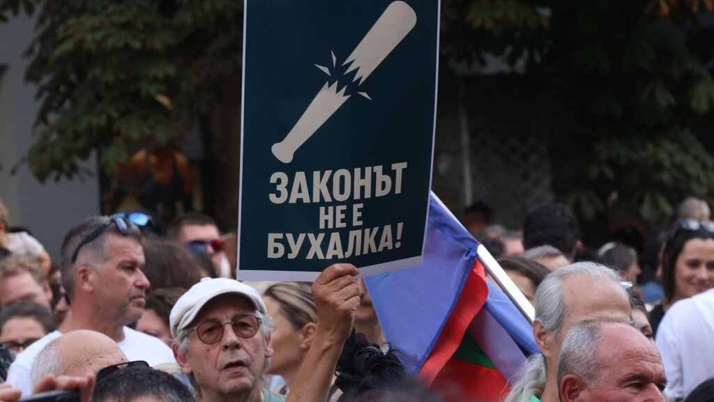 "У закона есть хозяин, и его зовут Делян Пеевски – сообщник Бойко Борисова. Вместо того чтобы институты служили обществу, вместо того чтобы поддерживать его и чтобы оно могло нормально существовать, их используют несколько бандитов", – заявил протестующим сопредседатель "Демократической Болгарии" Ивайло Мирчев.