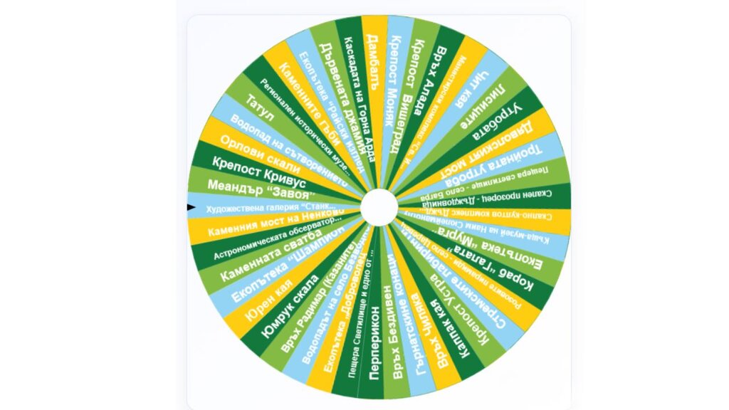 Виртуальное колесо предлагает более 40 туристических объектов или маршрутов. Самая востребованная достопримечательность - древний скальный комплекс Перперикон. «У этого скального города нет выходных, разве что в дни, когда руины покрываются снегом», - отметил экскурсовод Георги Кючуков, чьи рассказы уже довелось послушать не одной тысяче туристов – болгарских и иностранных. Он разработал несколько туристических маршрутов.