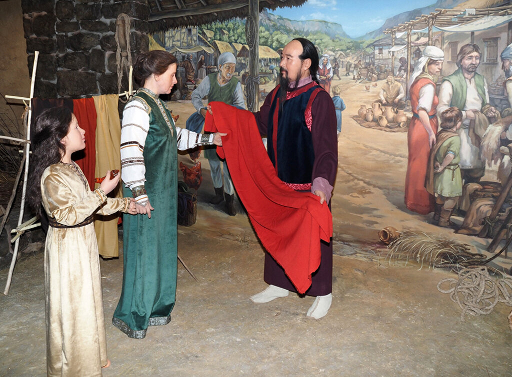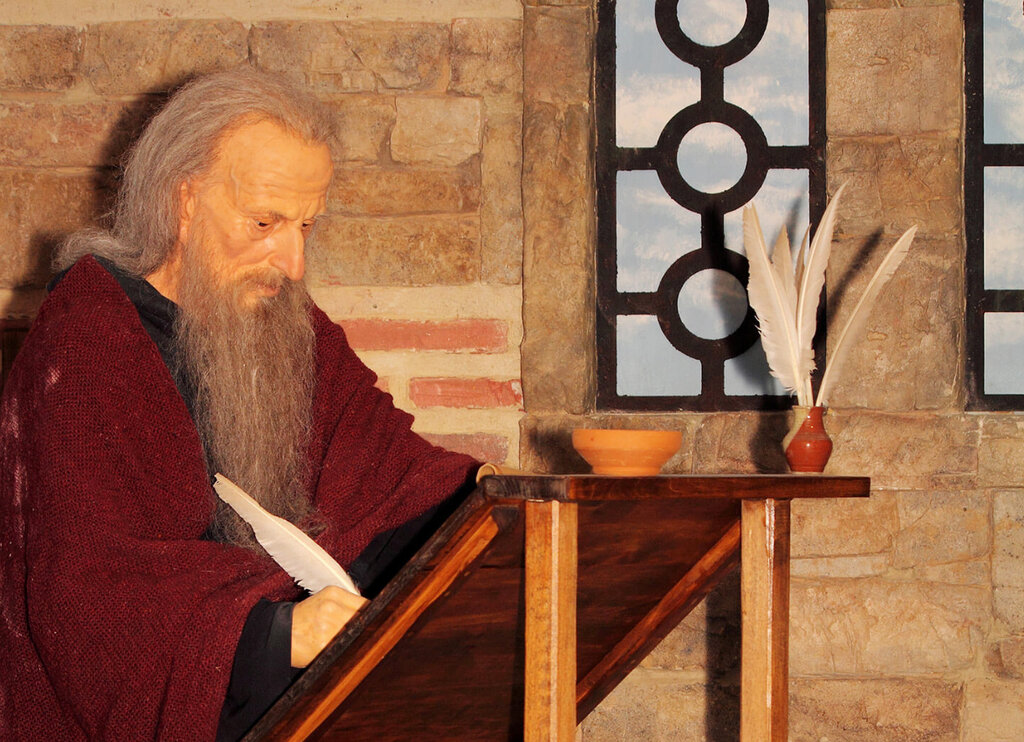 Но наша туристическая прогулка по Центру для посетителей «Царевград Тырнов» все еще не закончилась. Внимание привлекают еще живописная картина торговой улицы и пестрая одежда зажиточных людей и купцов той эпохи. В другом из залов звучат песнопения, созданные знаменитым Иоанном Кукузелем, чье певческое дарование заслужило ему прозвище Ангелоголосый. Экспозиция уводит и в т. наз. скрипториум, где создавалась средневековая литература Тырновской книжной школы, достигшей своего апогея в XIV-XV вв.