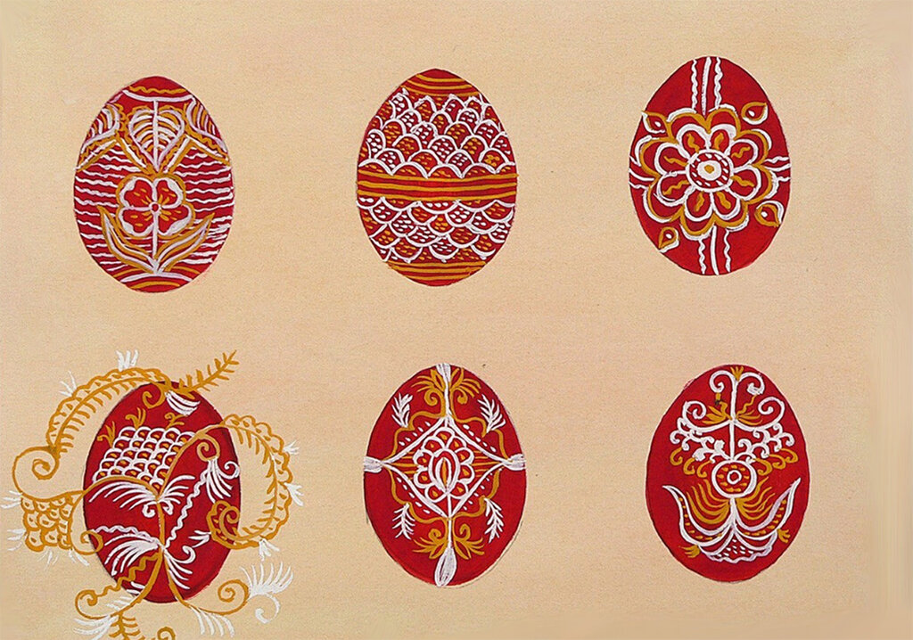 «На яйцо наносится крестный знак, а вокруг него – растительные орнаменты, - объясняет Георги Куманов. – Пасха связана с солнцем, поэтому здесь появляется свастика, которая тоже обогащена множеством привнесенных орнаментов. Интересны растительные орнаменты, которые стилизованы, как и лестница в небо. В рисунках Марии Малчевой можно обнаружить и некоторые зооморфные фигуры, например, бабочку как символ человеческого духа, или голубя».