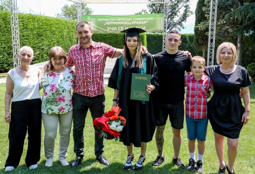 Ректорът на Варненския свободен университет „Черноризец Храбър“ проф. д-р Петър Христов връчи днес дипломата за висше образование на световната шампионка по кикбокс Полина Галинова от Шумен. Тя официално вече е психолог.