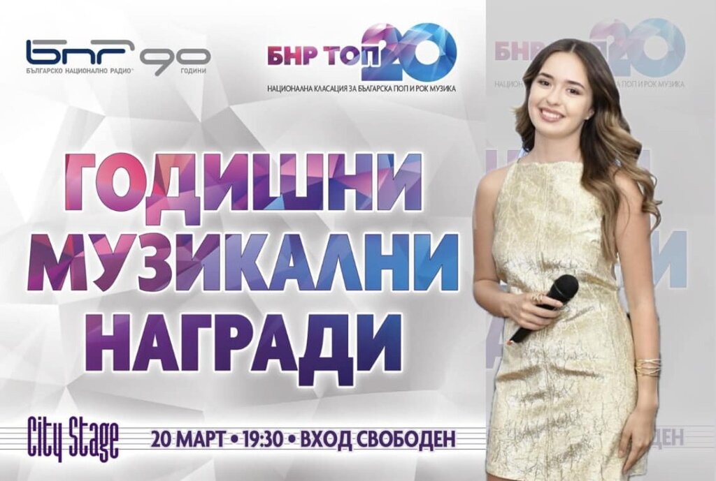Тази вечер Националната класация БНР Топ 20 ще раздаде своите Годишни музикални награди за 2024 г. Събитието е в столичния клуб City Stage от 19.30 часа. Свои песни ще изпълнят Мария Илиева, Любо Киров, Jeremy?, No More Many More и Валери Йорданов, ТОМА, Славин Славчев и Марта Цветкова, Funkilicious, Ерсин, GABO, Ася Ганкова, Дани Илиева и Антон Котас. Вечерта на призовете ще открие Папи Ханс. Специален концерт са подготвили D2.