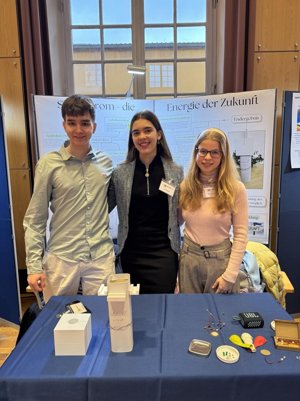 Отборът на Деница, Рая и Владимир печели трето място в раздел “Физика”. Проектът им представлява уред, превръщащ звука в електрическа енергия, с цел пестене на ресурси и принос за зеленото бъдеще на планетата.