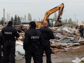 В момента някои от хората със съборени домове в "Захарна фабрика" живеят под тенти, дадени им от доброволци.