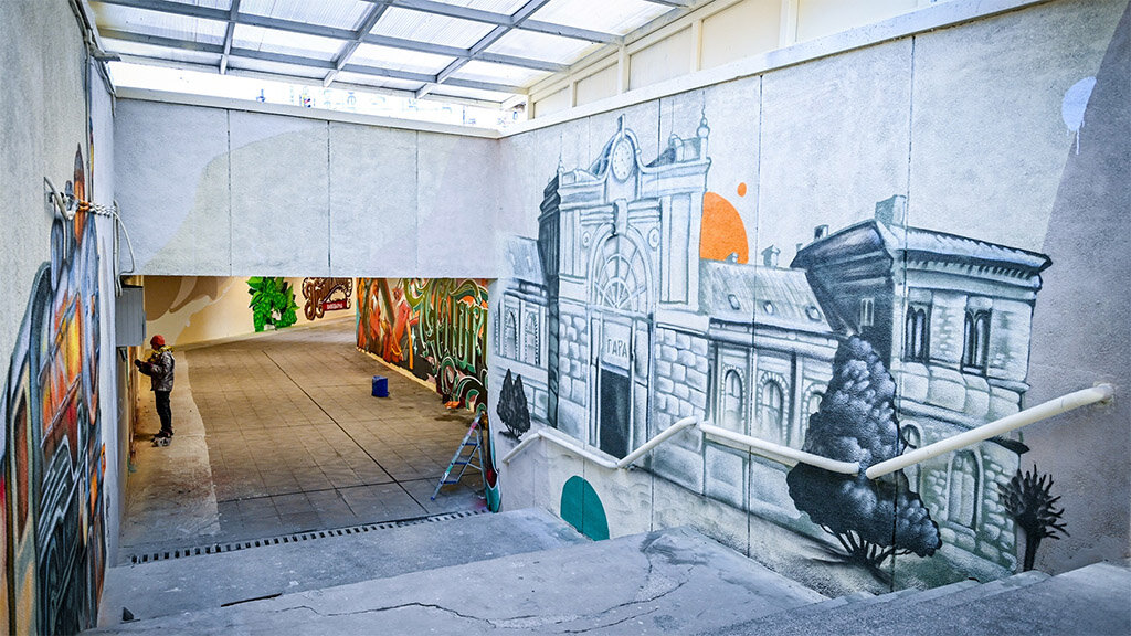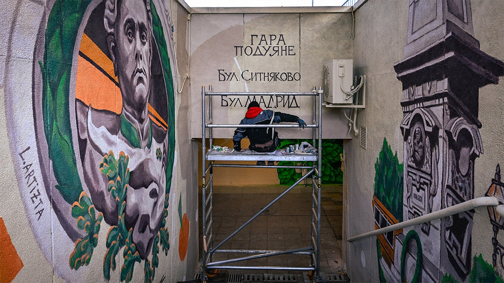 Кузмов, кметът на район "Средец" Трайчо Трайков и заместник-посланикът на Чехия у нас Ян Индржих "довършиха" символично изографисването на подлеза на бул. "Мадрид" при бул. "Ситняково".