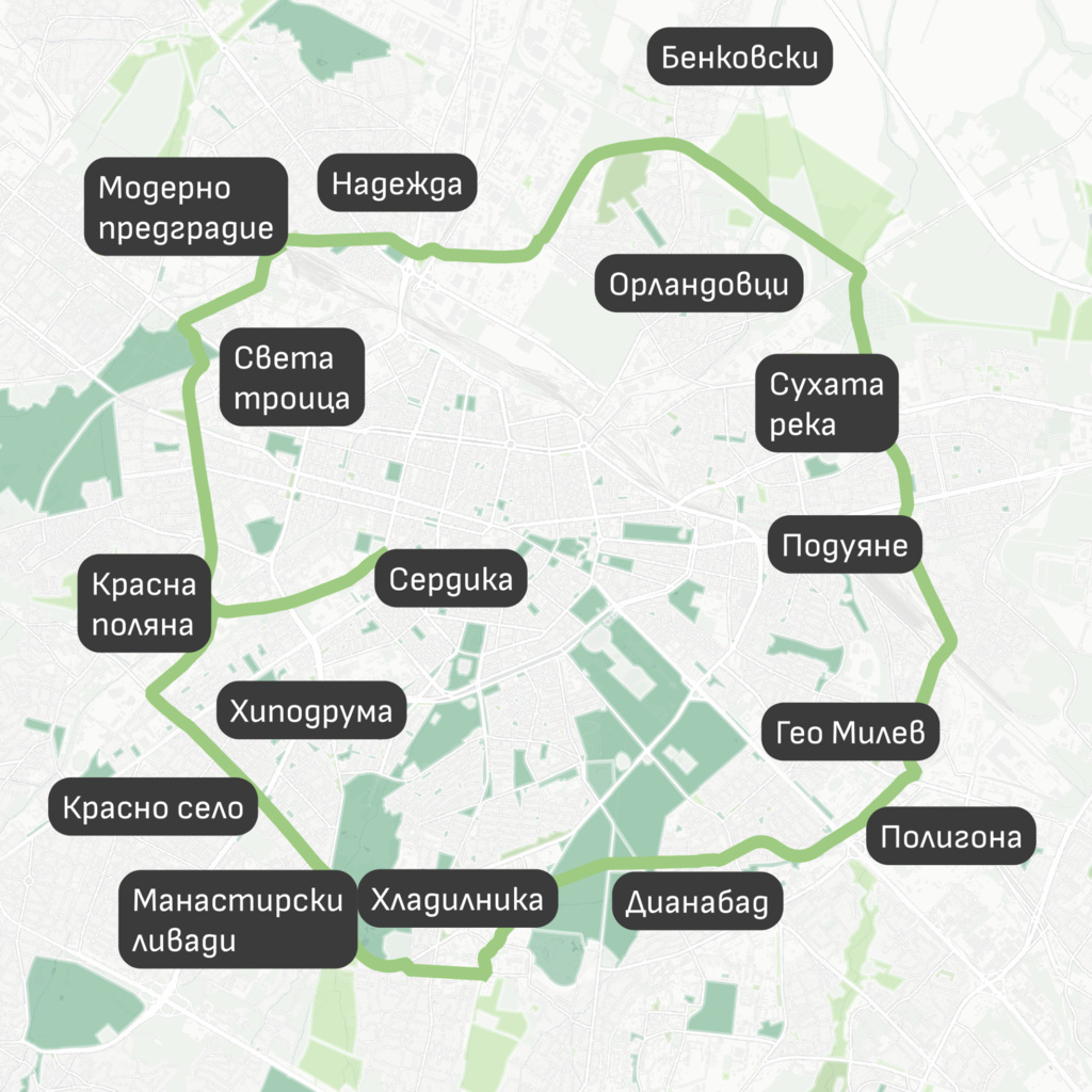 Зеленият ринг е един от ключовите стратегически проекти за развитието на София. С дължина около 30 километра, бъдещият линеен парк ще свърже над 30 жилищни квартала и ще осигури пряк достъп до зелената система на града за повече от 250 000 жители. Целта е в края на 2026 г. да стартира изграждането на първата отсечка – от гара "Пионер" до бул. "Шипченски проход", съобщиха от Столичната община.