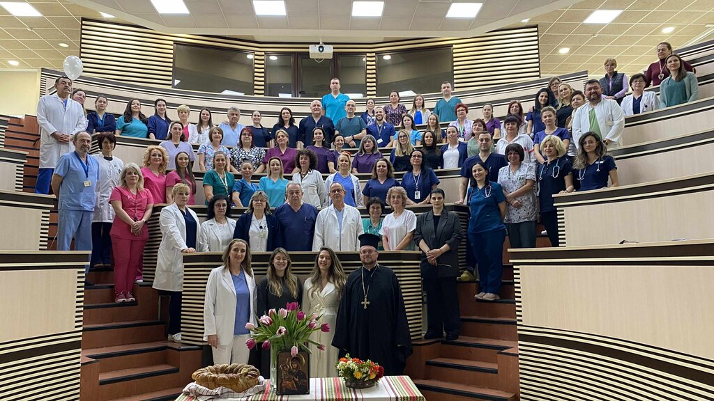 В аулата на Университетската акушеро-гинекологична болница бе отслужен водосвет за здраве и благополучие.