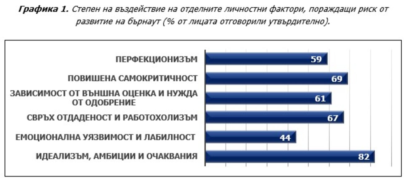 Повишените амбиции и очаквания, работохолизмът и перфекционизмът са най-силно изразени в професиите, свързани с маркетинг и продажби, при управителите на хотели и ресторанти, и специалистите по информационни и комуникационни технологии.