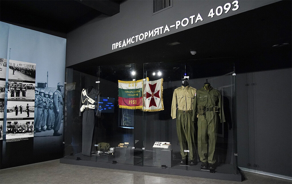 Flamujt dhe uniformat e kompanisë 4093 në ekspozitën "Ushtria Bullgare - 20 vjet pjesë e NATO-s" në Muzeun Kombëtar Historiko-Ushtarak.