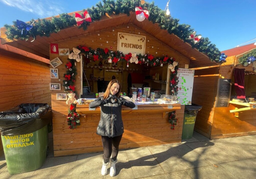 Pranë Pallatit Kombëtar të Kulturës në kryeqytet, shkëlqen një pemë e Krishtlindjeve e zbukuruar me lodra të bëra nga fëmijët dhe aty pranë janë të shpërndara tezgat e "Sofia Christmas Fest 2024". Verë dhe raki e zier ofrohen në çdo hap, dhe frymën e Krishtlindjes e plotëson kuzhina e larmishme ndërkombëtare. “Po marr pjesë në pazar për të ndjerë edhe më shumë frymën festive” – thotë shitësja Roksana Karaasenova, teksa na përgatit çokollatë të ngrohtë natyrale me marshmallou dhe shton: