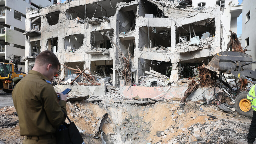 Një ndërtesë e shkatërruar në Tel Aviv pas një sulmi me raketa iraniane