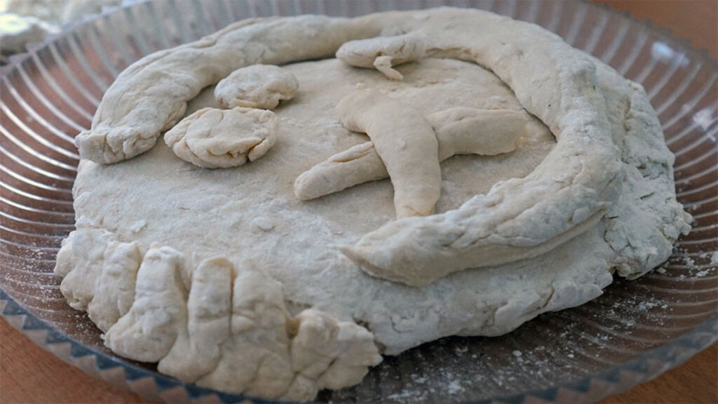 обредним хлебовима који се месе уз посебне ритуале и песме...