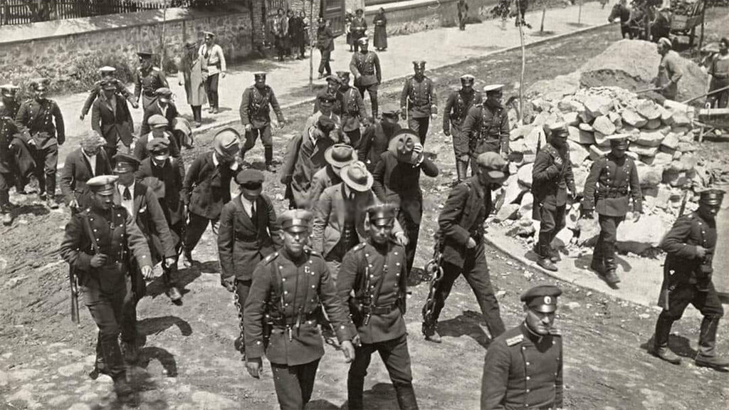 Полиција спроводи политичке затворенике ухапшене након Септембарског устанка 1923. године.