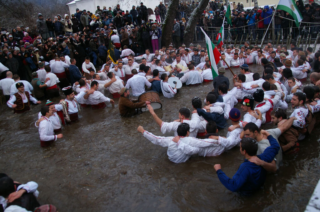 А град Калофер, на југу Бугарске, на Јордановдан обично освањује уз звуке тапана и гајди. На тај дан се тамо игра чувено мушко коло у леденим водама реке Тунџе.