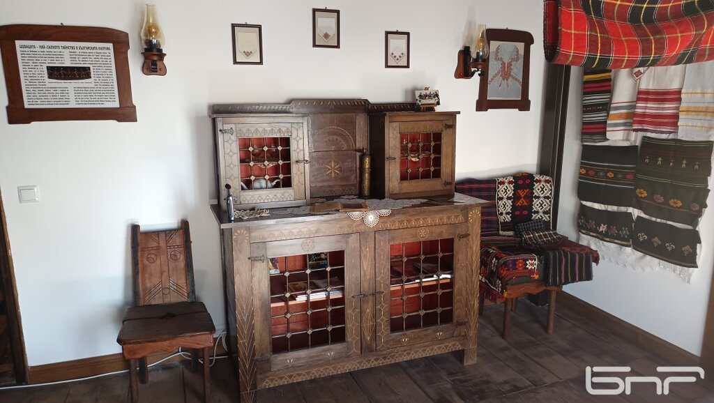 Може би затова представянето на традиционната българска шевица, на символите и орнаментите в нея, са сред основните акценти в експозицията, вътре и вън от къщата.