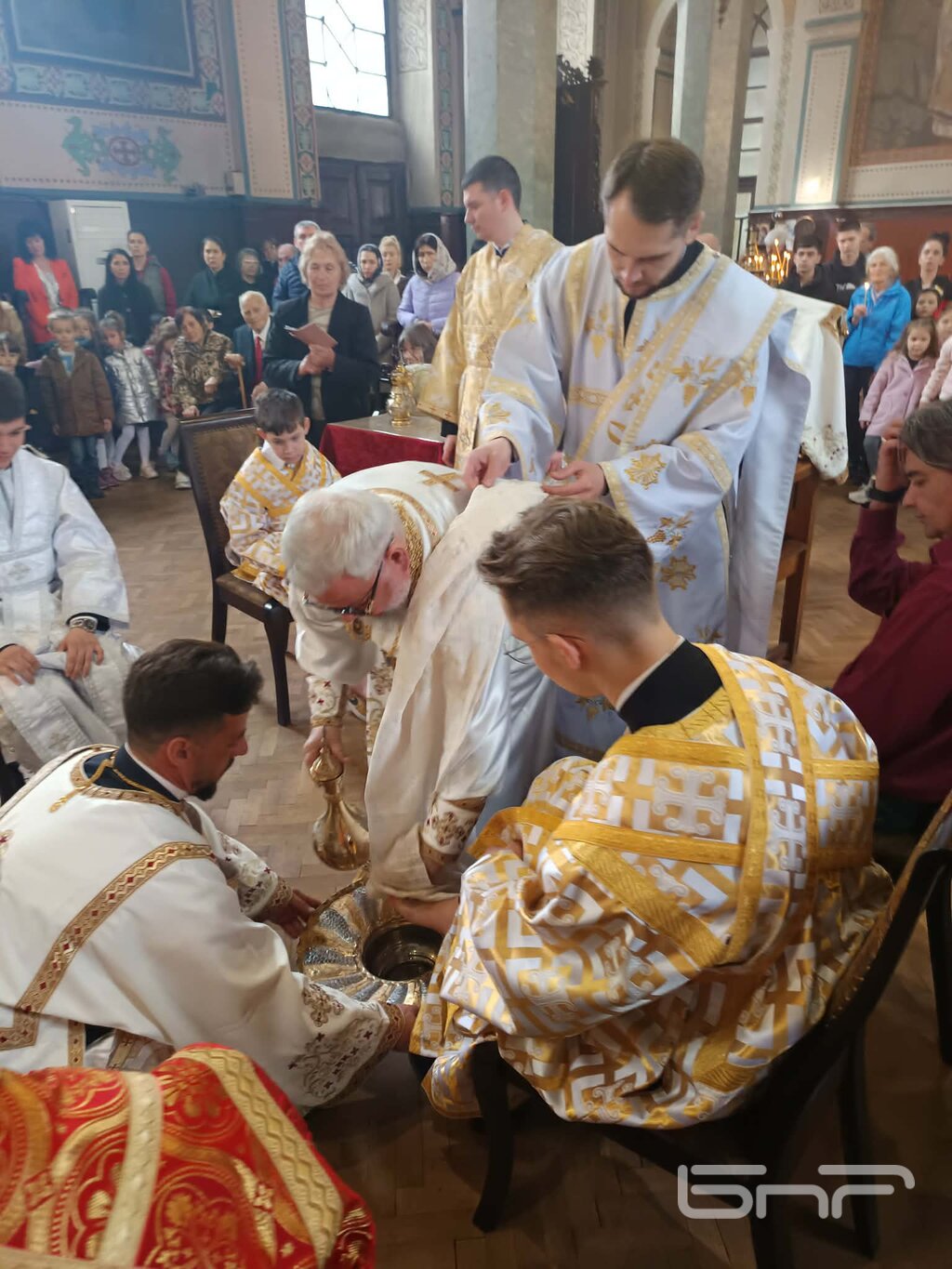 Старозагорският владика извърши чина по умиване на нозете на 12 свещенослужители - дякони, иподякони, и миряни. Сред тях беше и отец Маркос, който служи в първия български православен храм "Св. Йоан Рилски" в Република Южна Африка.