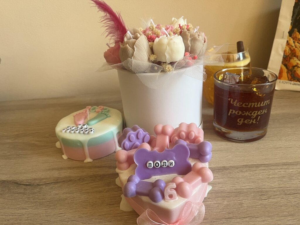 "Използвам соев восък, като изливам първо основата, след това разтапям на определена температура восъка. Разбивам с миксер и се получава ефектът на сметана. Восъкът е една суровина, която много наподобява на хранителни продукти."