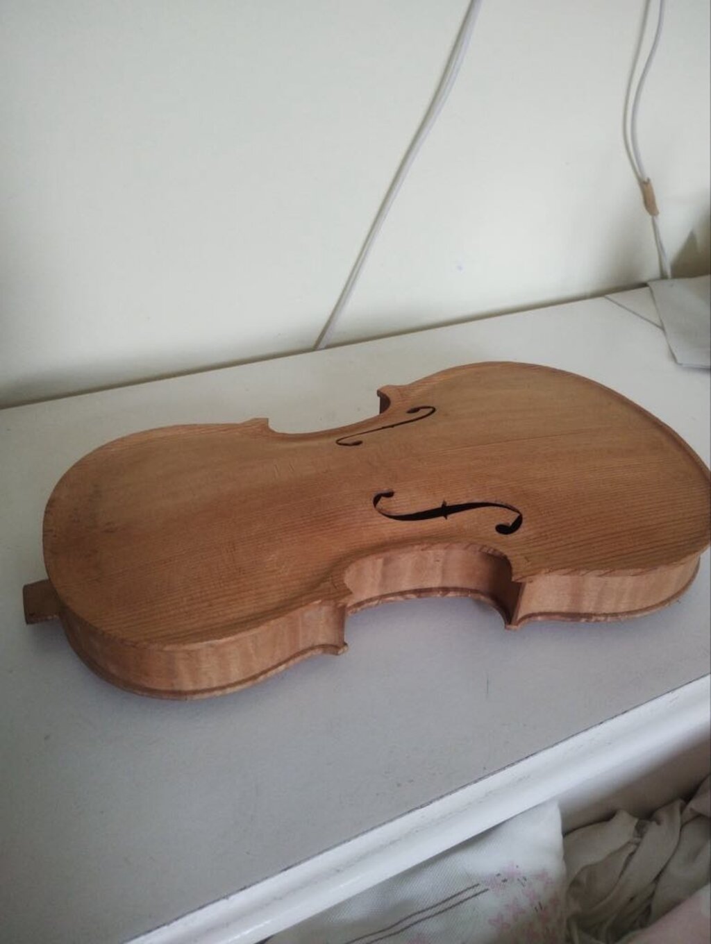 Инструментът е сглобен конструктивно от Шивачев, но е без гриф, без струни, трябва и да бъде лакиран. Така у Божков възниква идеята цигулката да бъде довършена.