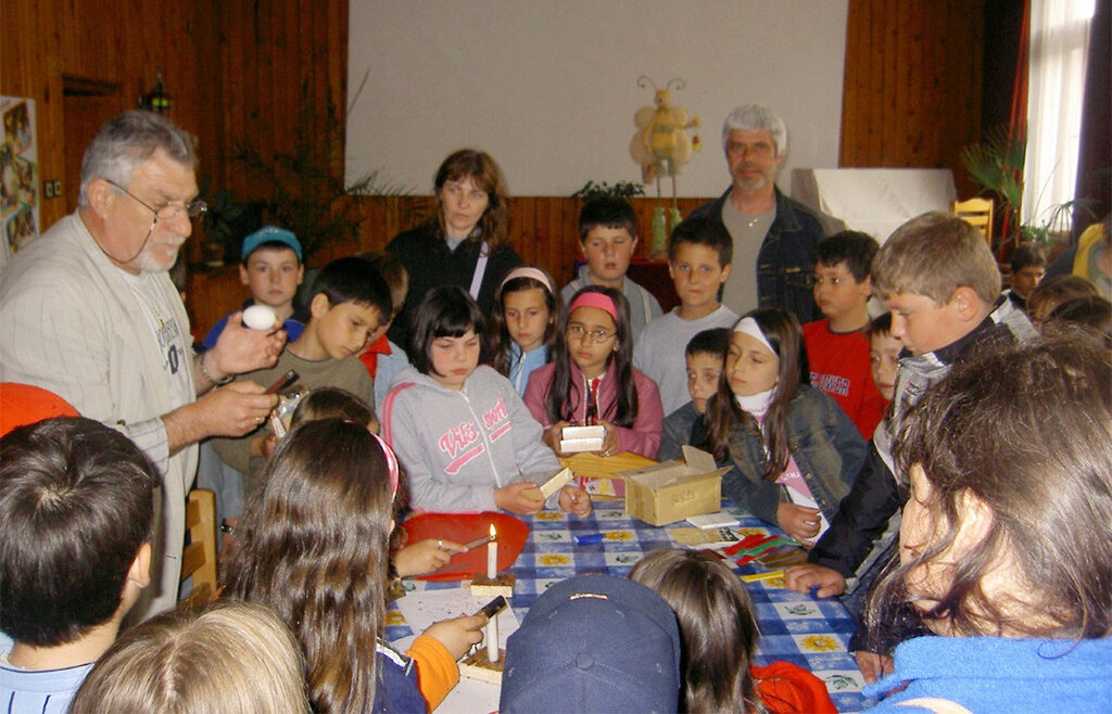 Georgi Kumanov çocukları yumurta boyama sanatıyla tanıştırıyor.