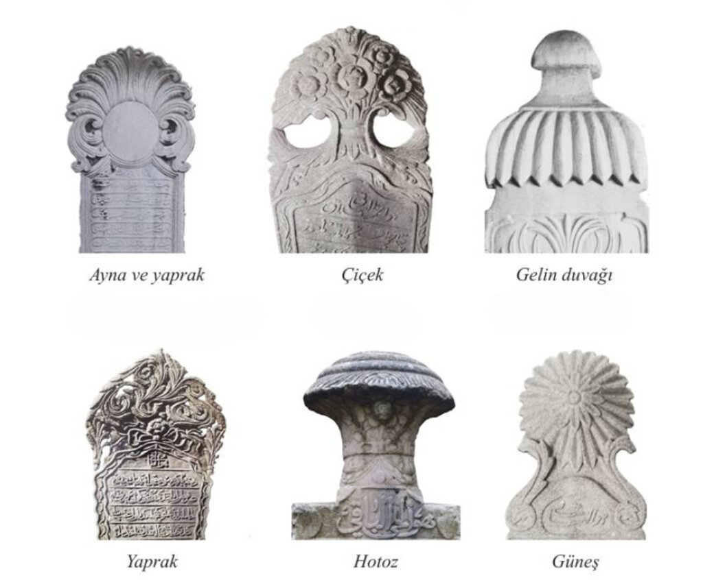 Kâtiplerin, ağaların kavukları var, vezirlerin, paşaların kavukları var. Bunlar hepsi birbirinden farklı. Kadınlarda tabii ki ilk dönem daha sade, fakat Tanzimat'tan sonra 1800'lı yıllardan itibaren Batı'nın etkisiyle barok dediğimiz, rokoko dediğimiz sanat anlayışlarının etkisiyle kadın mezar taşlarında başlıklar ortaya çıkıyor.