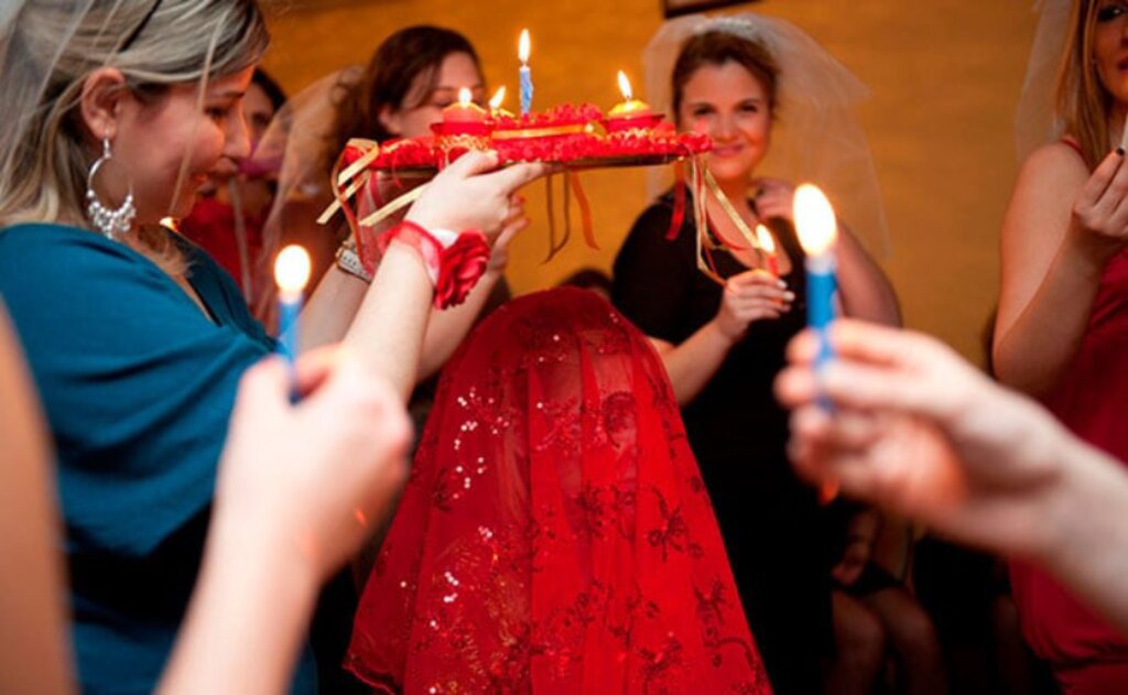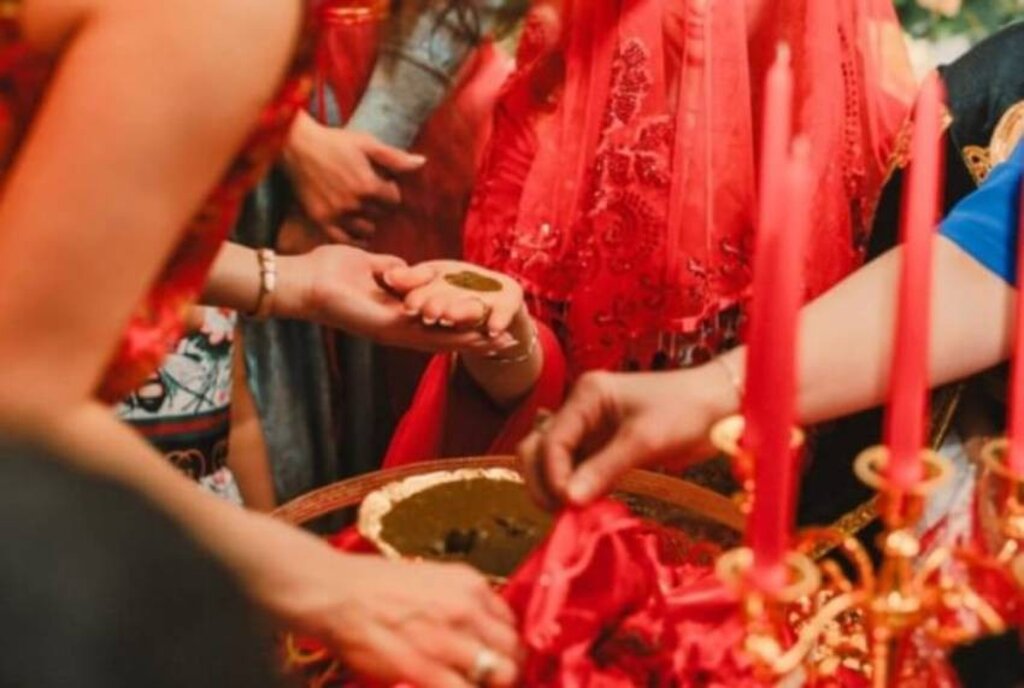 “Kına gecesi, kız tarafı ile ilgili bir gelenektir, düğünden bir gün önce gelinin evinde yapılır. Sadece kadınların davet edildiği bu geceye genelde gelinin yakın kız arkadaşları ve akrabaları katılır. Gelin “bindallı” adı verilen işlemeli yöresel bir kıyafet giyer. Bindallının kırmızı renkte olması tercih edilir. Gelinin başına yine kırmızı duvak örtülür, çünkü kırmızı renk hayatı, aşkı ve gücü temsil eder. Mutluluğun ve yeni başlangıcın sembolüdür. Gelin merkezi bir yere oturtulur ve gecenin en önemli anı kına yakma ritüeli başlar. Gelinin avucuna genellikle kayınvalide tarafından kına yakılır, ancak bundan önce “gelinin elini açma” adeti var. Gelin avucunu açmayarak kına yakılmasını engeller. Gelinin elini açması için kayınvalidenin gelinin avucuna bolluk bereket için para koyması gerekiyor. Genç kızlar mumlar eşliğinde kına tepsisi ile gelinin etrafında dönerler. Bunun anlamı gelinin kötü düşüncelerden korunmasıdır. Misafirlere de bu kınadan dağıtılır.