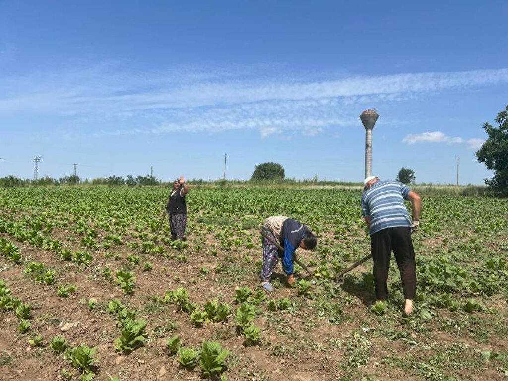 Kaolinovo’ya bağlı Todor İkonomovo köyüne yakın tarlalarda çalışan Ayşe Mehmet, “Tarla işleri hiç kolay değil, ama bizim gibi insanlar da lazım” diyerek, kendisi için tütün kazmanın ağır iş olmakla birlikte bir çare de olduğunu paylaştı.