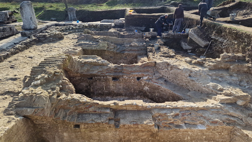 Dr. Tsırov'a göre, ısıtmalı ve mağazaların bulunduğu bu bina, antik bir “alışveriş merkezi”dir. Bazı mağazalarda, o döneme özgü seramik kap parçaları ve tamamlanmamış kemik süslemeler bulundu. Isıtmalı yürüyüş alanı, MS 180 ile 192 yılları arasında hüküm süren İmparator Commodus dönemine tarihlenmektedir. Commodus bir komplo sonucu öldürülmüş ve adı, unutulmaya mahkum edildiği için yazıtlardan silinmiştir.