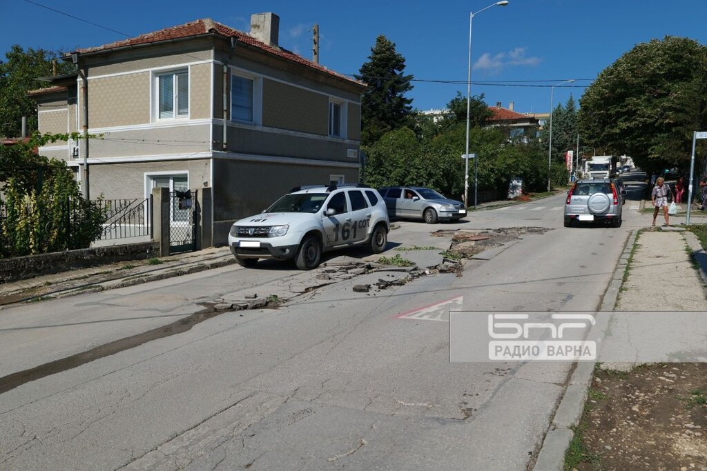 Проливният дъжд през последните два дни нанесе сериозни щети по пътната инфраструктура в район "Приморски" във Варна. Големи са пораженията в кв. "Виница", където на много места пътната настилка е разрушена. Огромни късове асфалт са откъртени от пороя.
