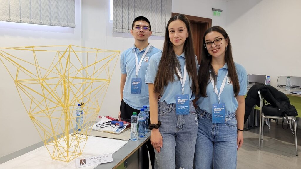 Даниела и Моника са деветокласнички от отбора на ПГС „Колю Фичето“ в Бургас. Признават, че не е лесно да се построи обърната пирамида от спагети и се е наложило малко да потренират преди състезанието.