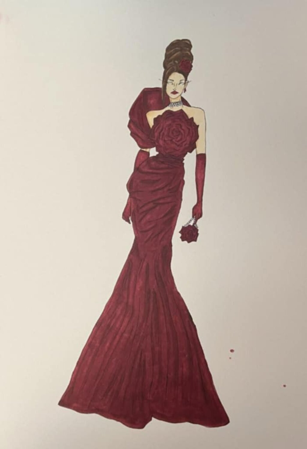 Янина успява да пребори конкуренция от 70 участници с дизайнерска скица на изящна червена официална рокля. Идеята за модела е вдъхновена от класната ръководителка на Янина Даниела Цонева.