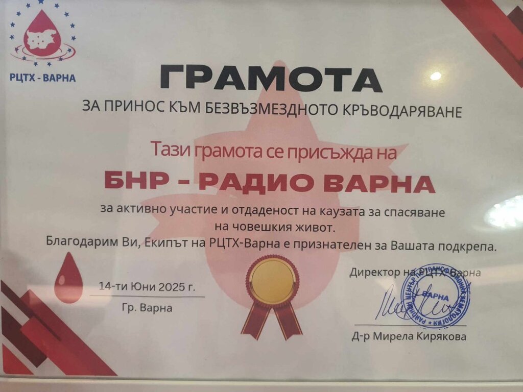 Радио Варна получи специална грамота за активно участие и отдаденост на каузата за спасяване на човешкия живот, а журналистът Нина Милошевич тази година бе отличена с приза "Гласът, който дарява живот".