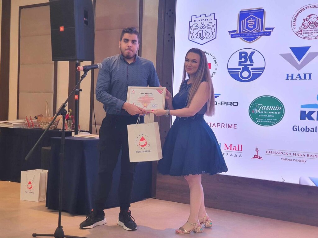 Най-младият кръводарител, който бе отличен от кръвния център в морския град, е 19-годишният Никола Маринов.