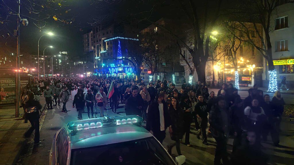 Минути преди 20 часа останаха около 400 души, които се насочиха съм Катедралния храм, след което блокираха кръстовището в района на СУ "Димчо Дебелянов".