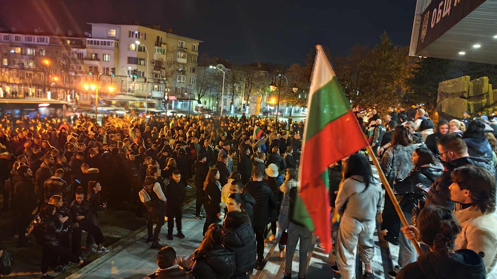 Събралото се множество се насочи към сградата на Община Варна. Хората скандират "Оставка", "Не на еврото", "Българи, юнаци", "Шиши, вън" и "Властта е в нас".