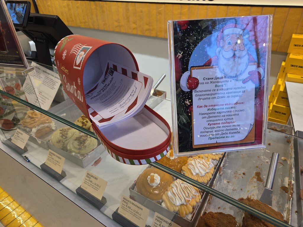 Благотворителна инициатива сбъдва коледните желания на деца в неравностойно положение. Зад кампанията стоят двама украинци, собственици на пекарна за канелени рулца в центъра на Варна. Дошли преди 2-3 години в страната ни Виктор Кирияк от Одеса и Валерий Гладенков от Киев призовават варненци да се превърнат в таен Дядо Коледа и да зарадват деца и младежи от Комплекса за социални услуги във Варна.