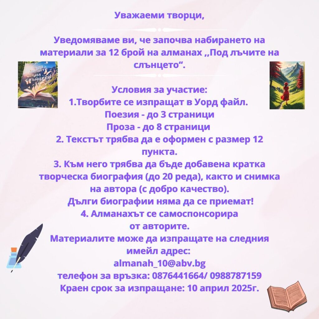 До 10 април е крайният срок за изпращане на произведения, които могат да бъдат публикувани в алманаха.