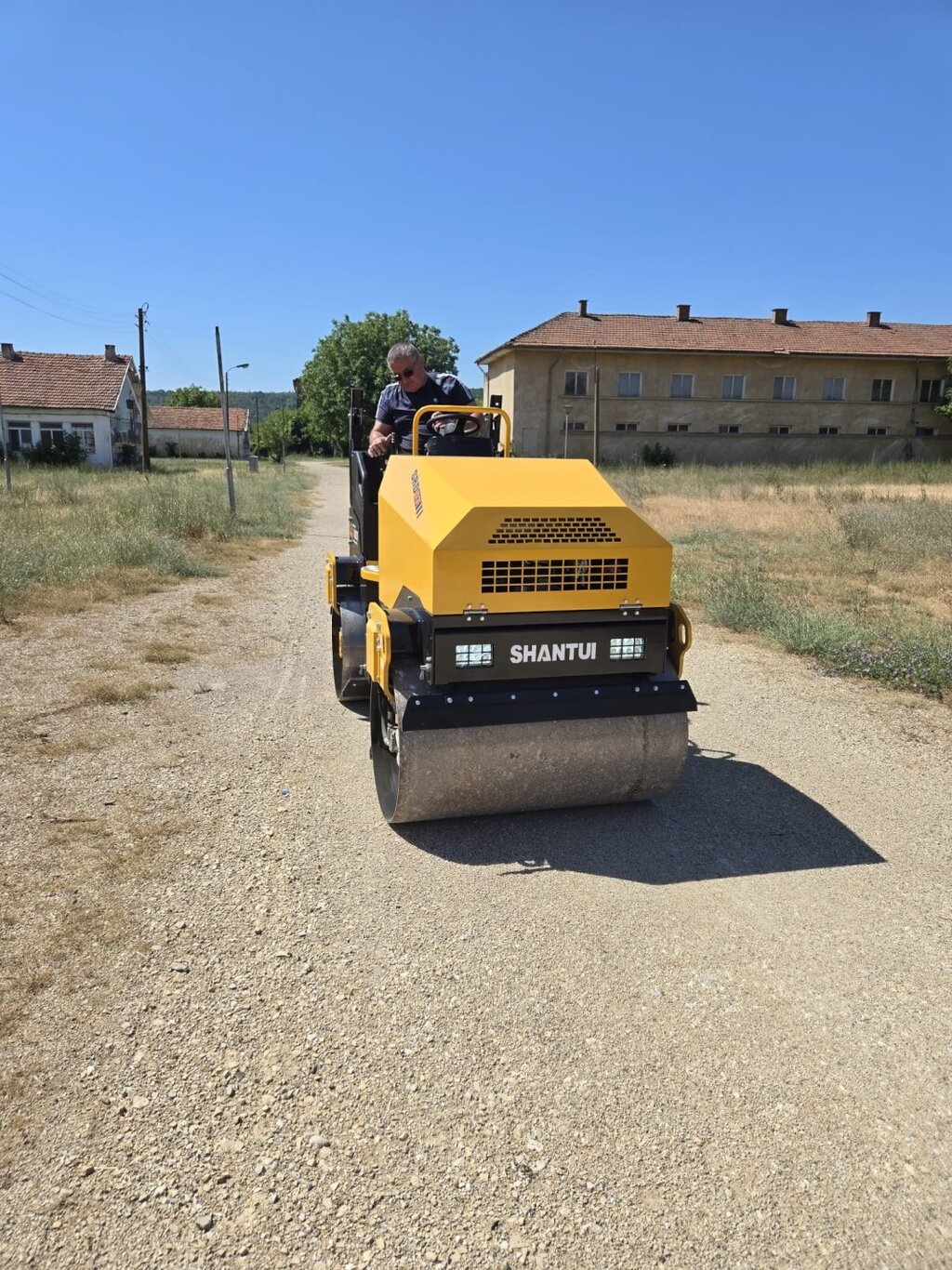 "Две от тях получихме в началото на учебната година - това са верижен багер и челен товарач. А сега в края на учебната година и когато учениците от 10 и 11 клас са на производствена практика, пристигна и още една нова машина двубандажен вибро валяк."
