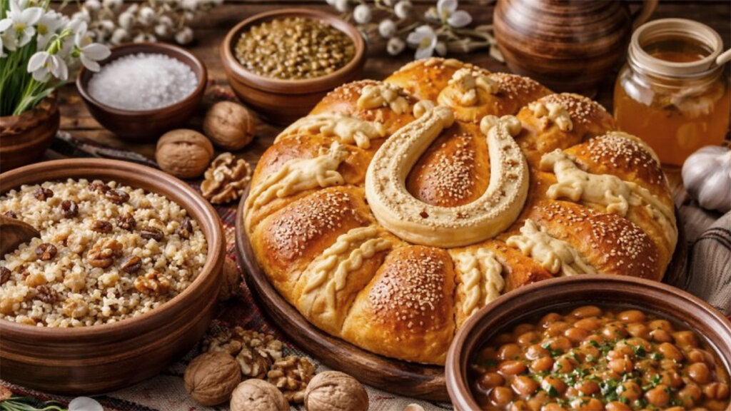 Für das Festmahl bereiten die Gastgeber ihre fleischlosen Lieblingsgerichte aus Linsen, Bohnen, getrockneten Paprikaschoten, Sauerkraut und eingelegtem Gemüse zu. Nach dem fünftägigen strengen Fasten können den Gerichten Öl und Olivenöl hinzugefügt werden. Auch ein wenig Wein ist zum Anstoßen erlaubt auf die Gesundheit derjenigen, die Namenstag haben und unter dem Schutz des Heiligen Teodor stehen.