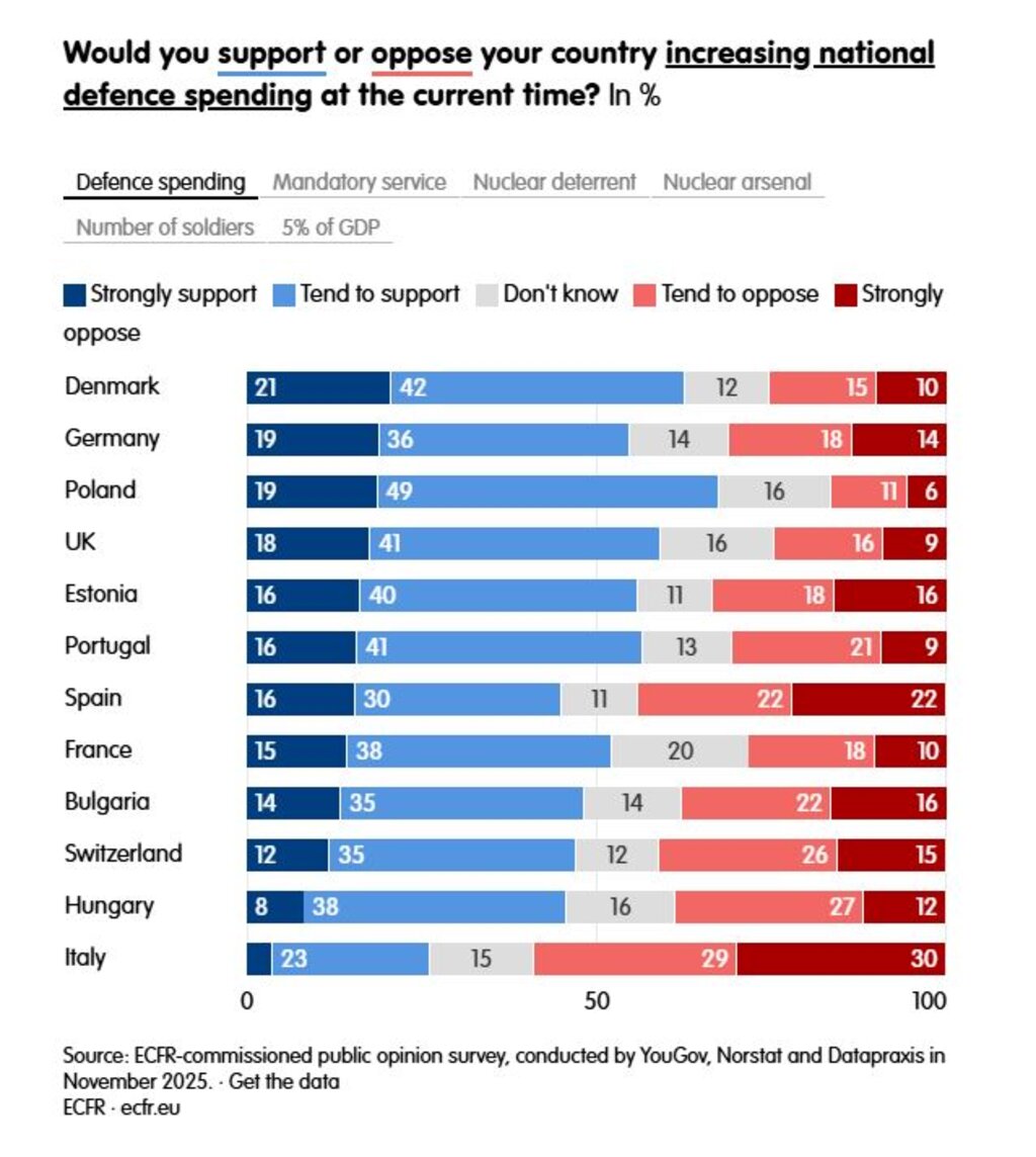 The survey also showed growing support across Europe for increased defence spending and the introduction of compulsory military service. According to the Bulgarian news agency BTA, support for reinstating conscription is strongest in France and Germany, followed by Bulgaria.