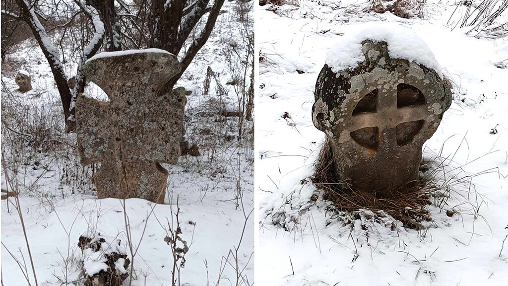 …así como por un antiguo cementerio con cruces de formas curiosas: una más grande delante y varias más pequeñas en círculo, detrás. Hay quien las asocia con las Cruzadas, otros las relacionan con los bogomilos.