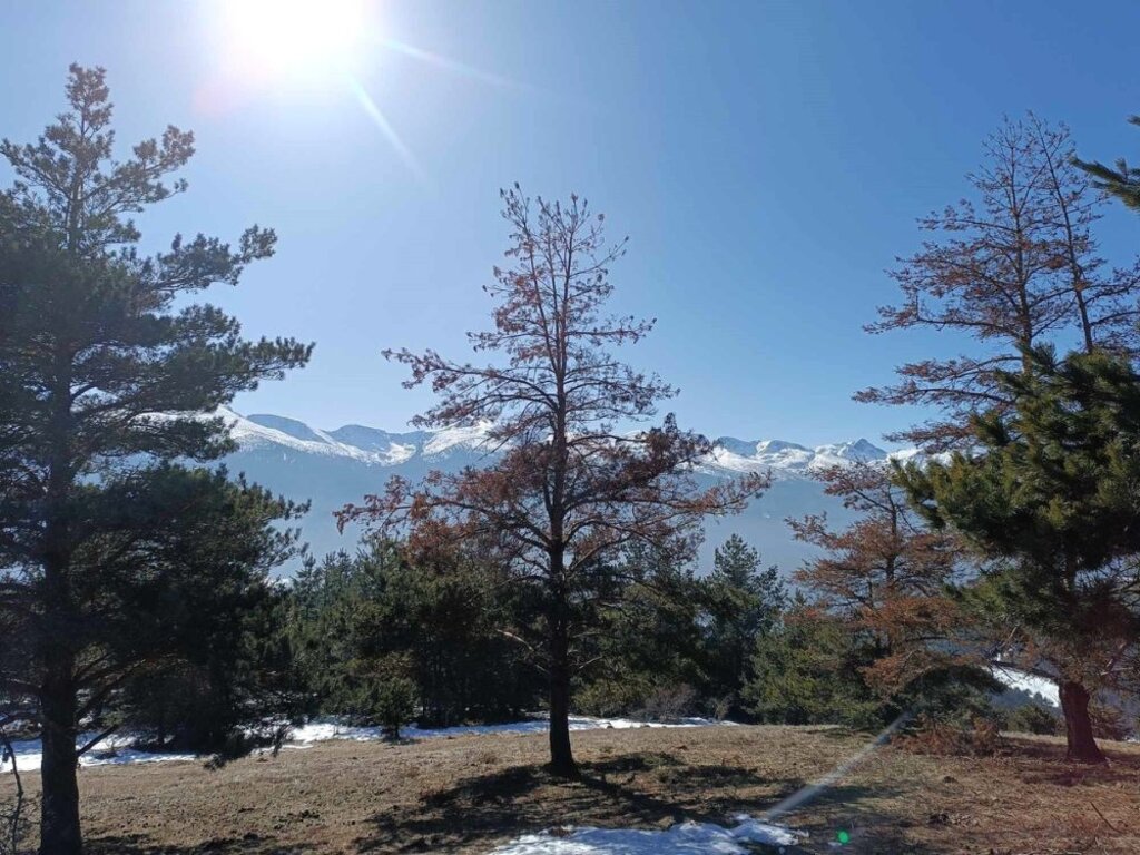 C’est l’hiver mais n’en témoignent que les taches de neiges parsemées au sol et les manteaux blancs sur les sommets.