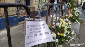 На столичната ул. „Ген. Гурко" граждани се събраха за пореден ден на протест и да почетат паметта на детето, което бе блъснато от кола на пешеходна пътека, 8 септември 2023 г.
